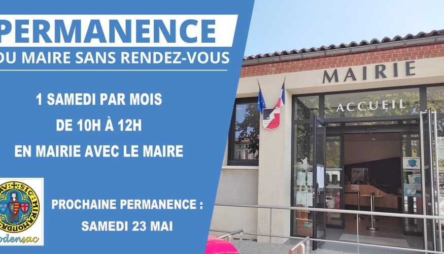 + Permanence du maire sans rendez-vous Le maire sera disponible un samedi par mois, de 10h à 12h, en mairie... Lire la suite