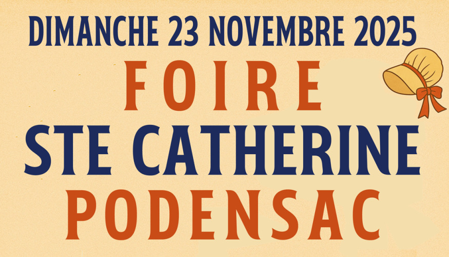 12 novembre 2025 Divers Foire Sainte-Catherine L’authentique Foire Sainte-Catherine revient à Podensac Dimanche 23 novembre 2025 – Centre-ville de Podensac La tradition... Lire la suite icon