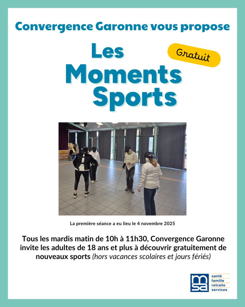 Convergence Garonne vous propose les Moments Sports, des séances gratuites pour essayer de nouveaux sports ! ![]()