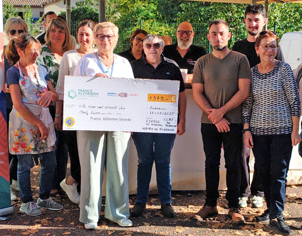 Les coordinateurs, les élus Maryse Fortion et Yann Feurté, remercient en premier lieu l’Association France Alzheimer – qui fêtait ses 40 ans ainsi que les 4 ans d’adhésion de Podensac au dispositif France Alzheimer – mais aussi le Département de la Gironde, la Communauté de communes Convergence Garonne, l’ESPASS-Maison de retraite de Podensac, ainsi que toutes les associations et acteurs mobilisés : Cœur de Village, GEM Ô Paletuviens, Podensac’ Gym et les 1000 Pieds. Merci également aux entreprises Tissot, Super U et Lillet pour leur générosité.
