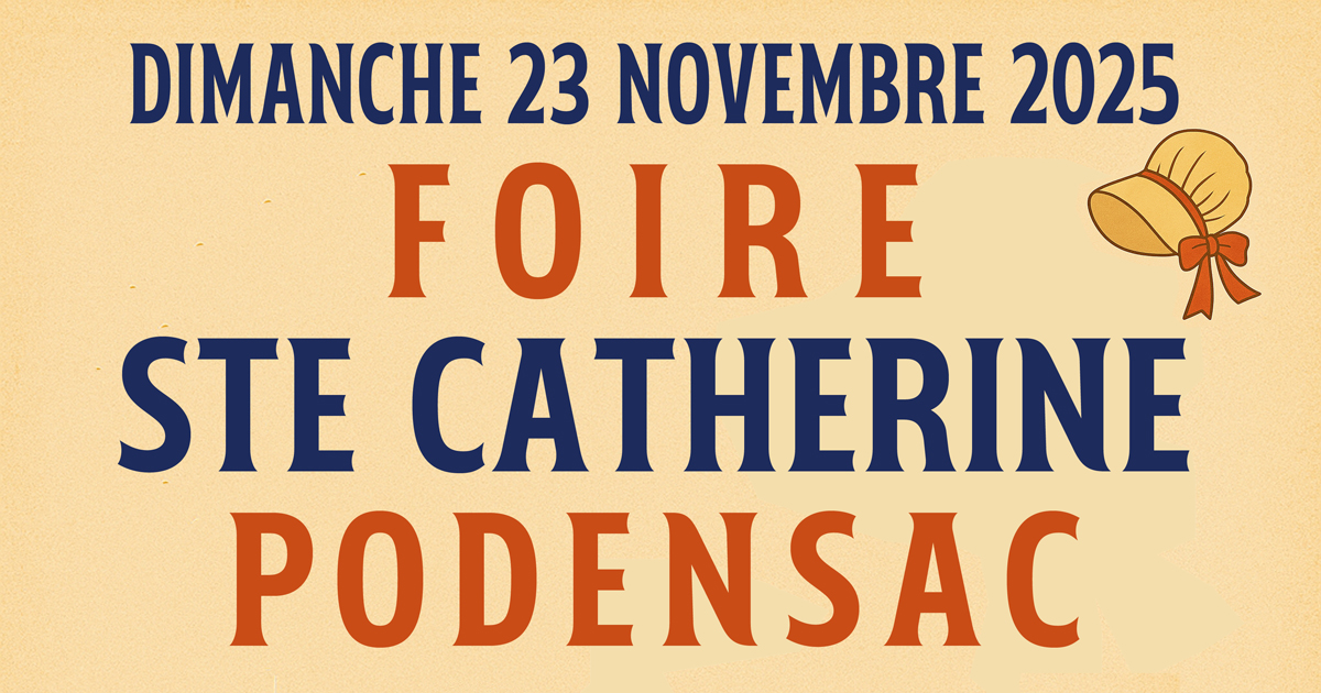 🎉 L’authentique Foire Sainte-Catherine revient à Podensac ! 🎠 📅 Dimanche 23 novembre 2025 📍 Dans tout le centre-ville La ville sera en fête toute la journée pour accueillir petits et grands dans une ambiance conviviale et gourmande 🌞 🕰️ Inauguration à 11h30 devant la salle des fêtes du Sporting 🎄 Au programme : ✨ Marché de Noël Téléthon – salle du Sporting 🧺 Vide-greniers (rues Sabin Darlan et Saint-Marc – infos : 06 89 32 75 13) 🍷 […] |