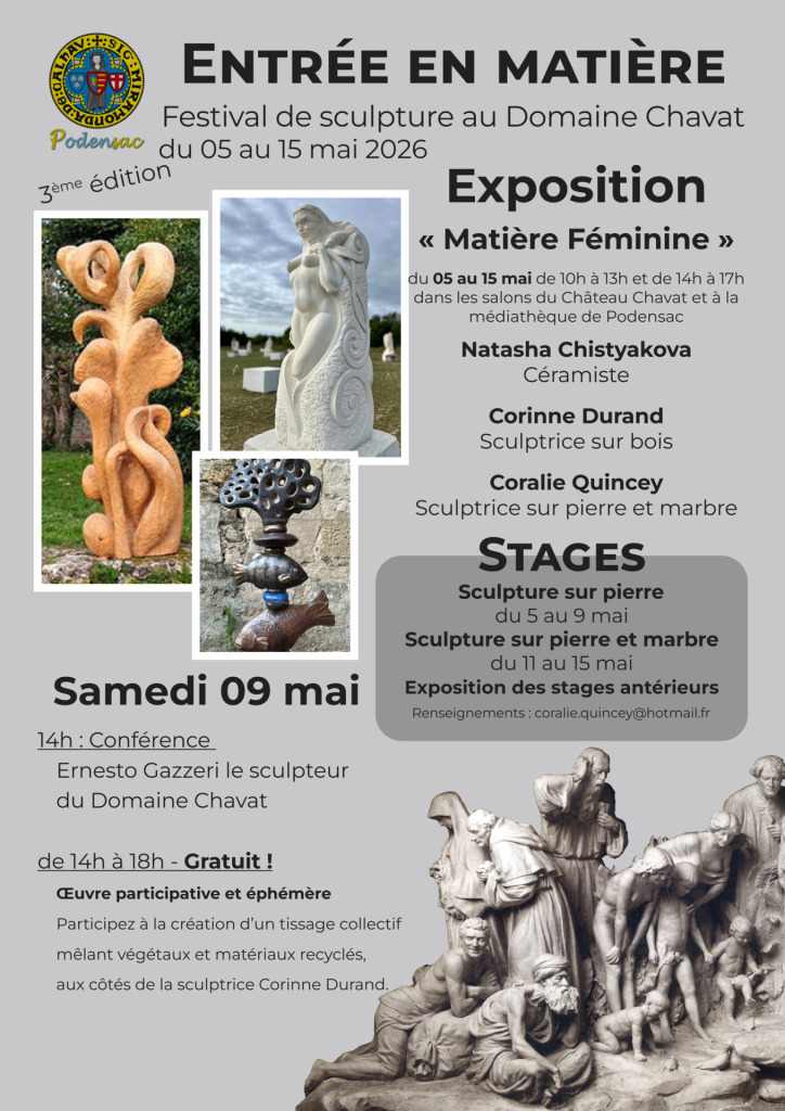 Le Château Chavat et la médiathèque de Podensac accueille une série d’événements dédiés à la sculpture, mettant à l’honneur les savoir-faire, la création contemporaine et la transmission artistique.