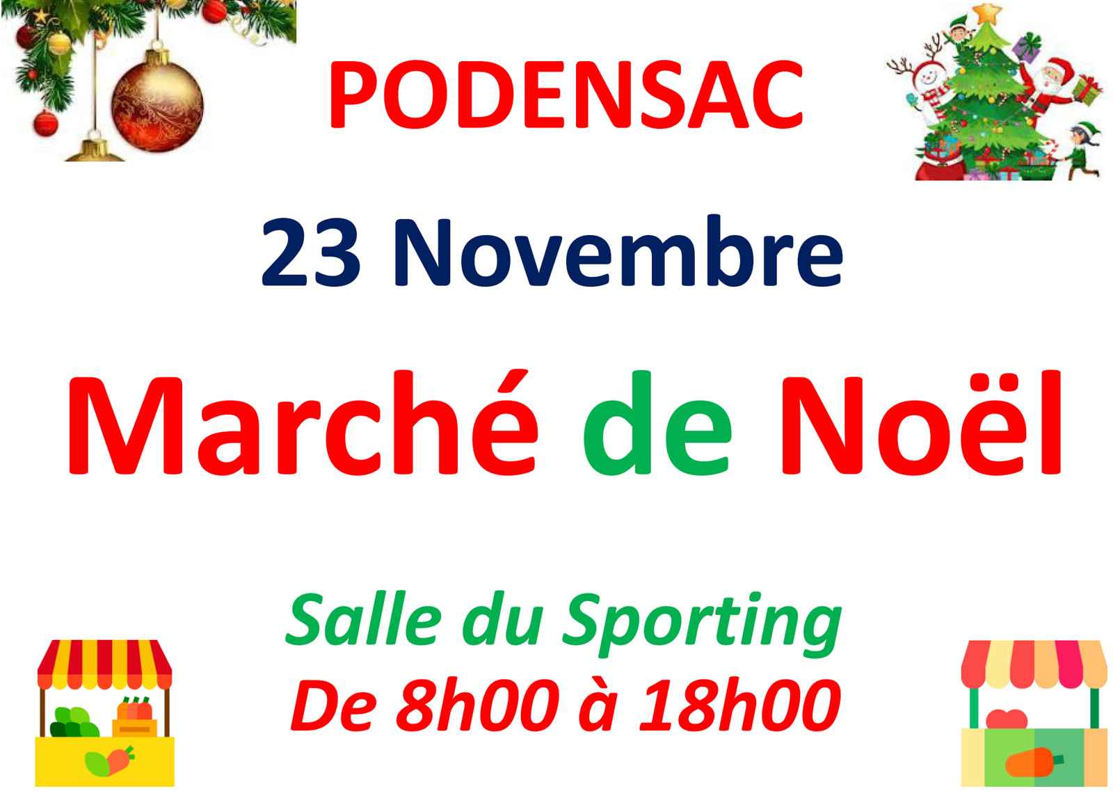 Même si la foire Sainte-Catherine est annulée, le Marché de Noël du Téléthon, prévu dans la salle du Sporting, est quant à lui maintenu ! Proposé par l'association "Histoire, Fontaines et Vieilles Pierres Podensacaises", il permettra de découvrir de nombreux produits artisanaux, des idées cadeaux, des décorations de Noël, des gourmandises locales et bien plus encore. Un moment convivial pour préparer les fêtes tout en soutenant le Téléthon ! Date : Dimanche 23 novembre de 8h00 à 18h00 Lieu : […] |